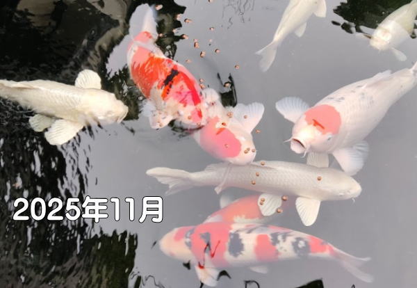 我が池の今朝の、水面温度は14℃。ポンプやパイプの詰まりを検査。底水・上水を効率的に動かし、水位のバランスを保ちます。蒸発分の新水を足し、落ち葉など上水の汚れを流すと、水面が美しく池底まで見えて、愛鯉が良く見えます。水